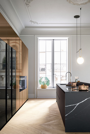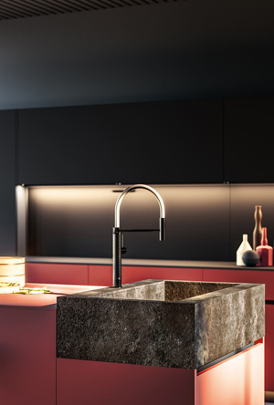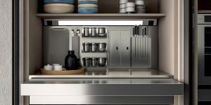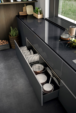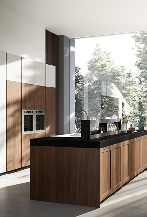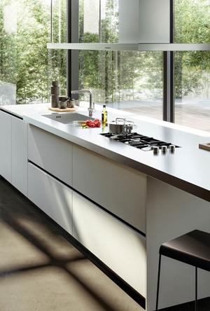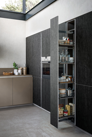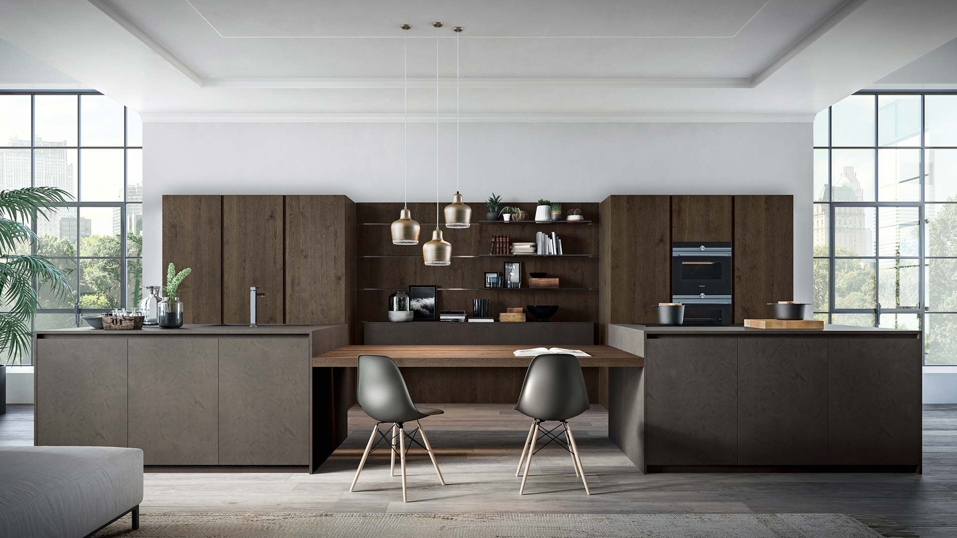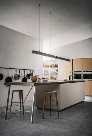 Un modèle innovant qui offre des combinaisons modernes de lignes droites, de nouveaux matériaux et des configurations évocatrices de l'environnement. Des solutions harmonieuses caractérisées par une attention particulière aux détails qui sont racontés dans le profil de la porte de 22 mm d'épaisseur formée à 33 ° et qui n'oublient jamais la dimension fonctionnelle et la vie quotidienne. Une cuisine qui parvient à s'adapter aux nouveaux rythmes de la vie quotidienne et à satisfaire les envies de personnalisation.