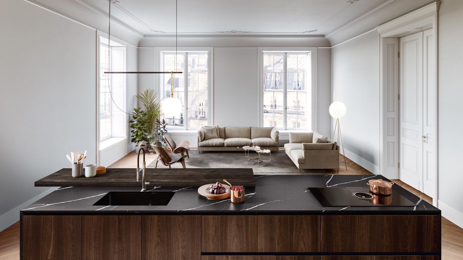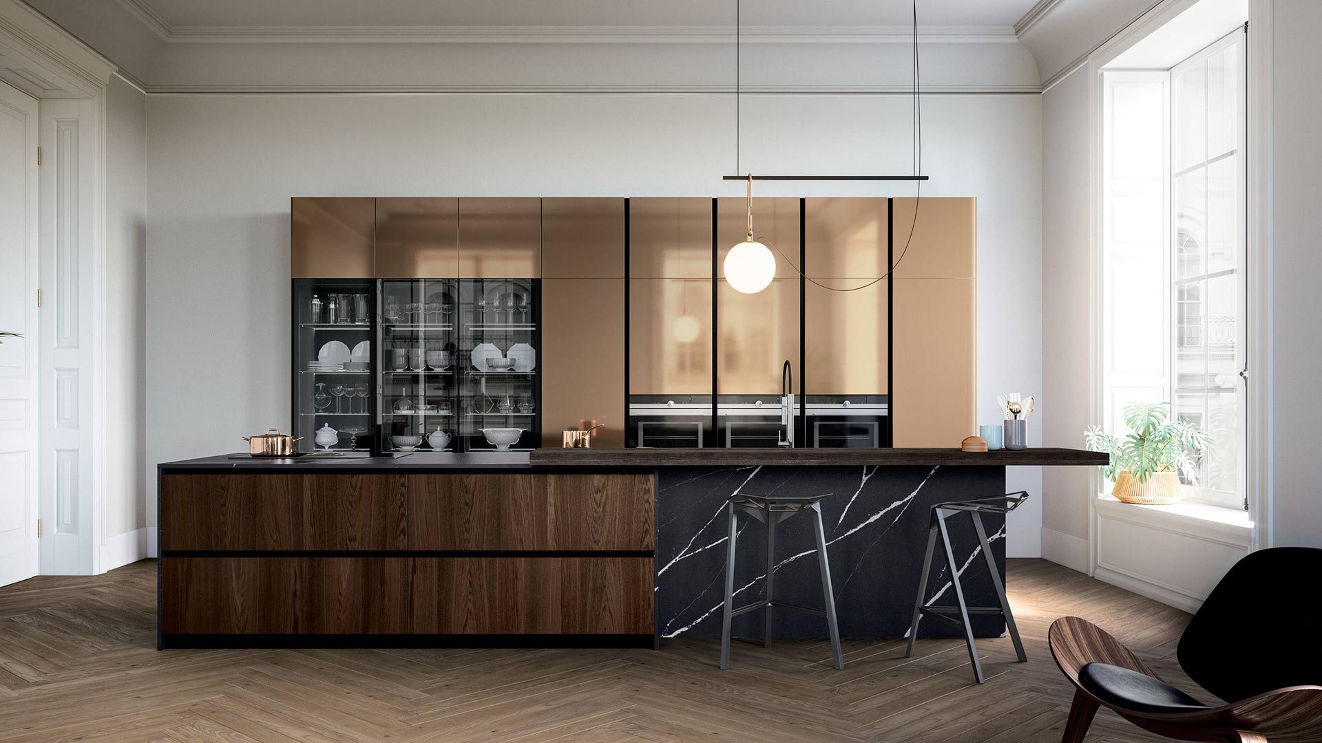 La cuisine Yota est créée autour des personnes qui l’habitent, chaque détail a été conçu pour accompagner le client dans un voyage émotionnel. Une riche porte de 22 millimètres d’épaisseur confère une importance particulière à la cuisine. Elle est mise en valeur par un vaste choix de matériaux tels que les bois plaqués finement travaillés et les laqués brillants, mats et autres laquages spéciaux.