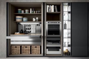 Vous avez la possibilité d’éclairer l’intérieur de tous les meubles, éléments bas, hauts et colonnes, par le biais d’une technologie led associée à des capteurs pour allumage automatique ou par télécommande.