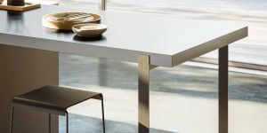 Des formes essentielles, des géométries limpides, des architectures intégrées au living. Un idéal de synthèses qui renvoie à l’aspect pratique en interprétant avec un goût contemporain le plaisir de l’intimité familiale.